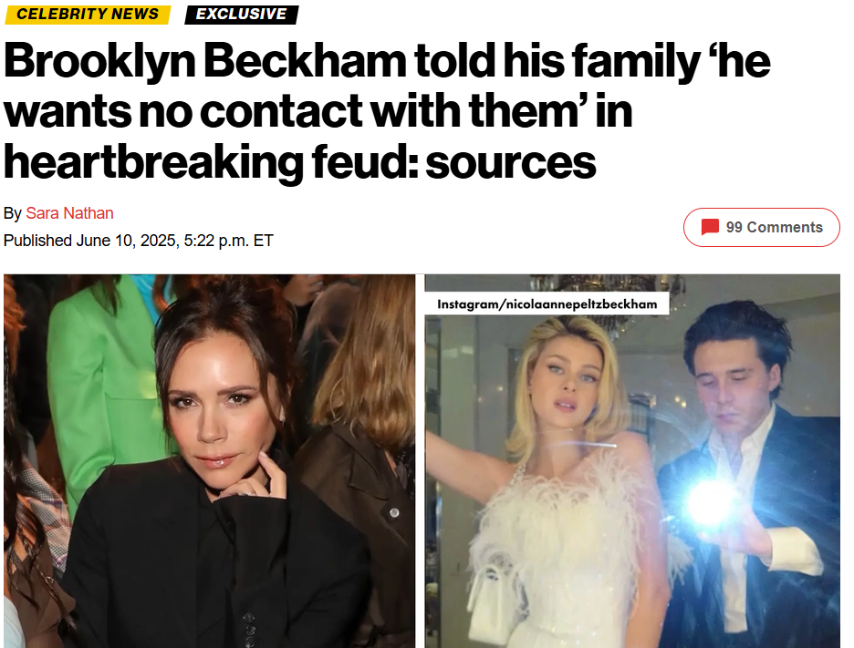 Page Six:布鲁克林-贝克汉姆告诉家族他已经不希望再和他们联系了