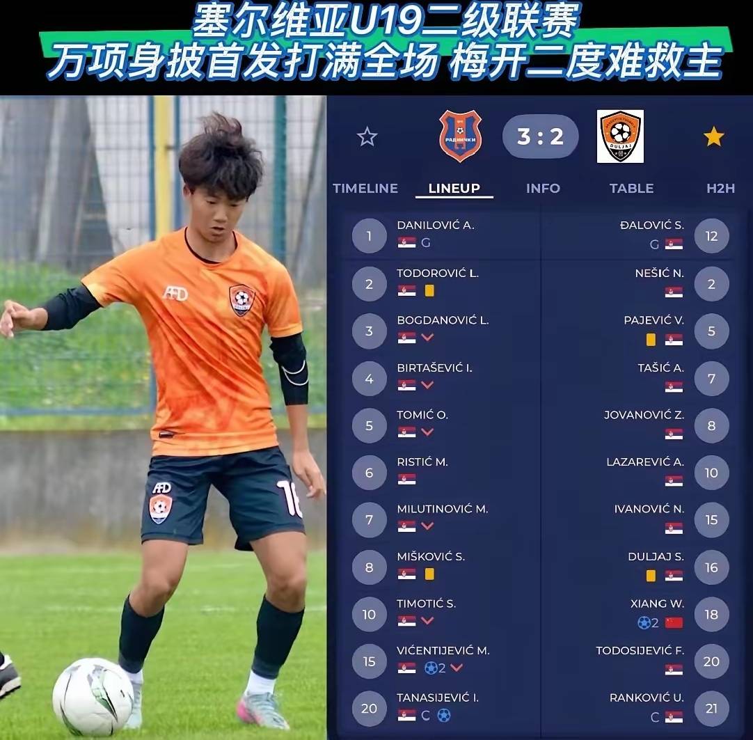 2,万项,现效力于塞尔维亚杜利亚伊U19B队,参加塞尔维亚U19二级联赛。